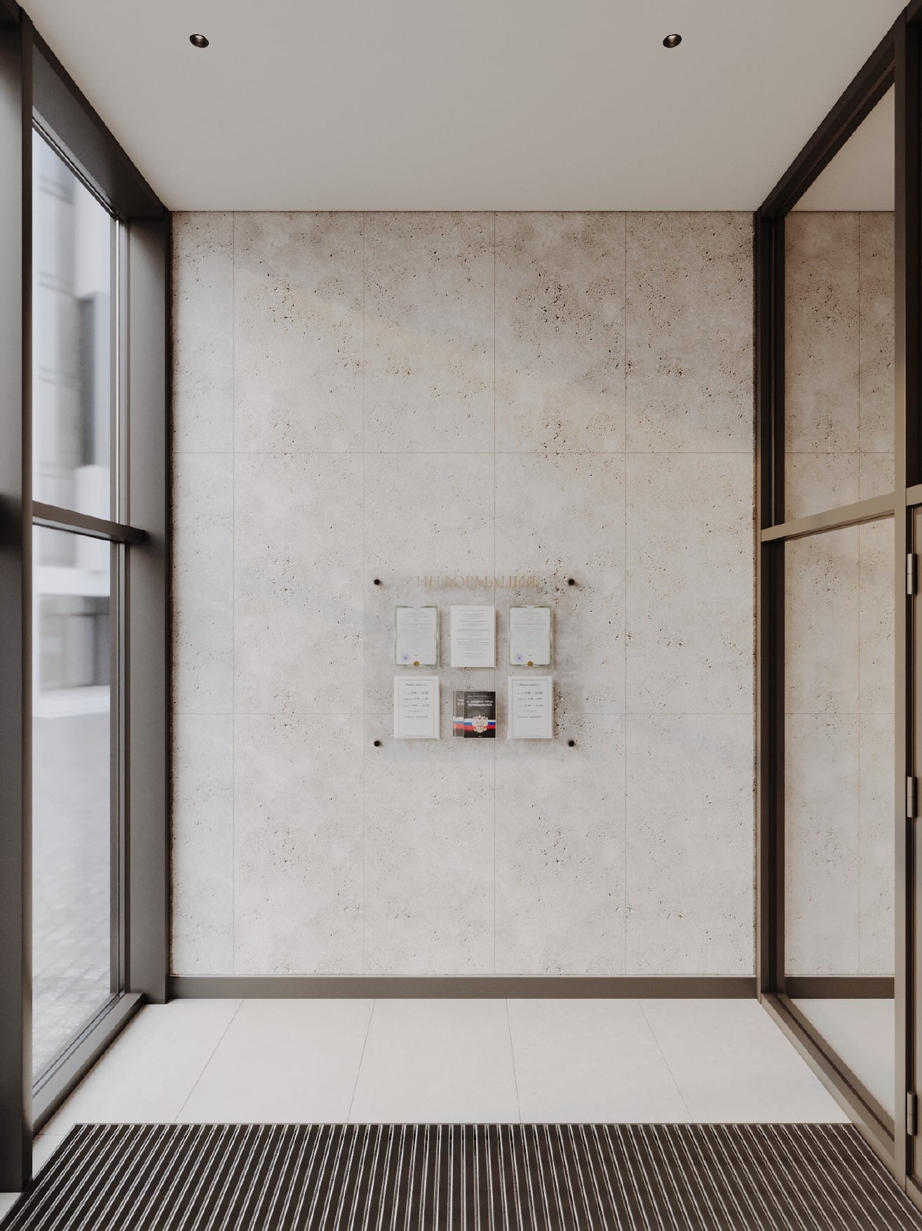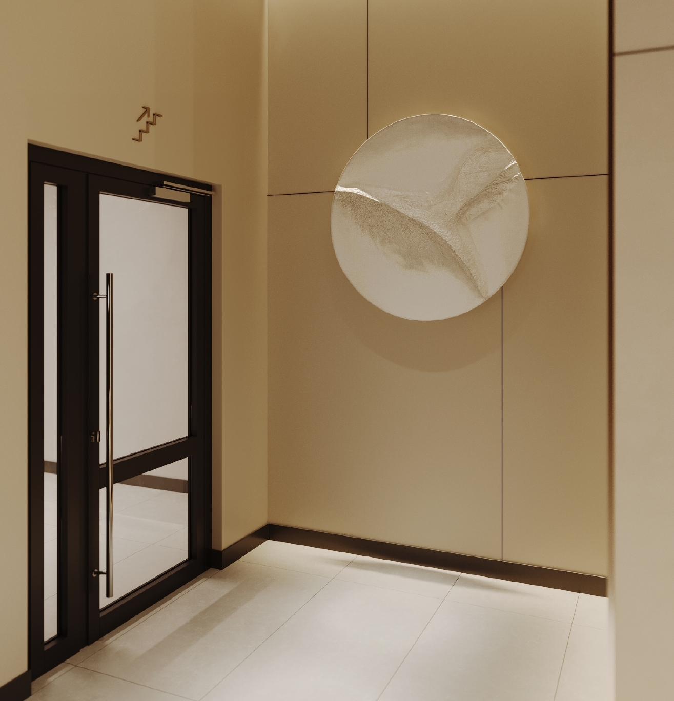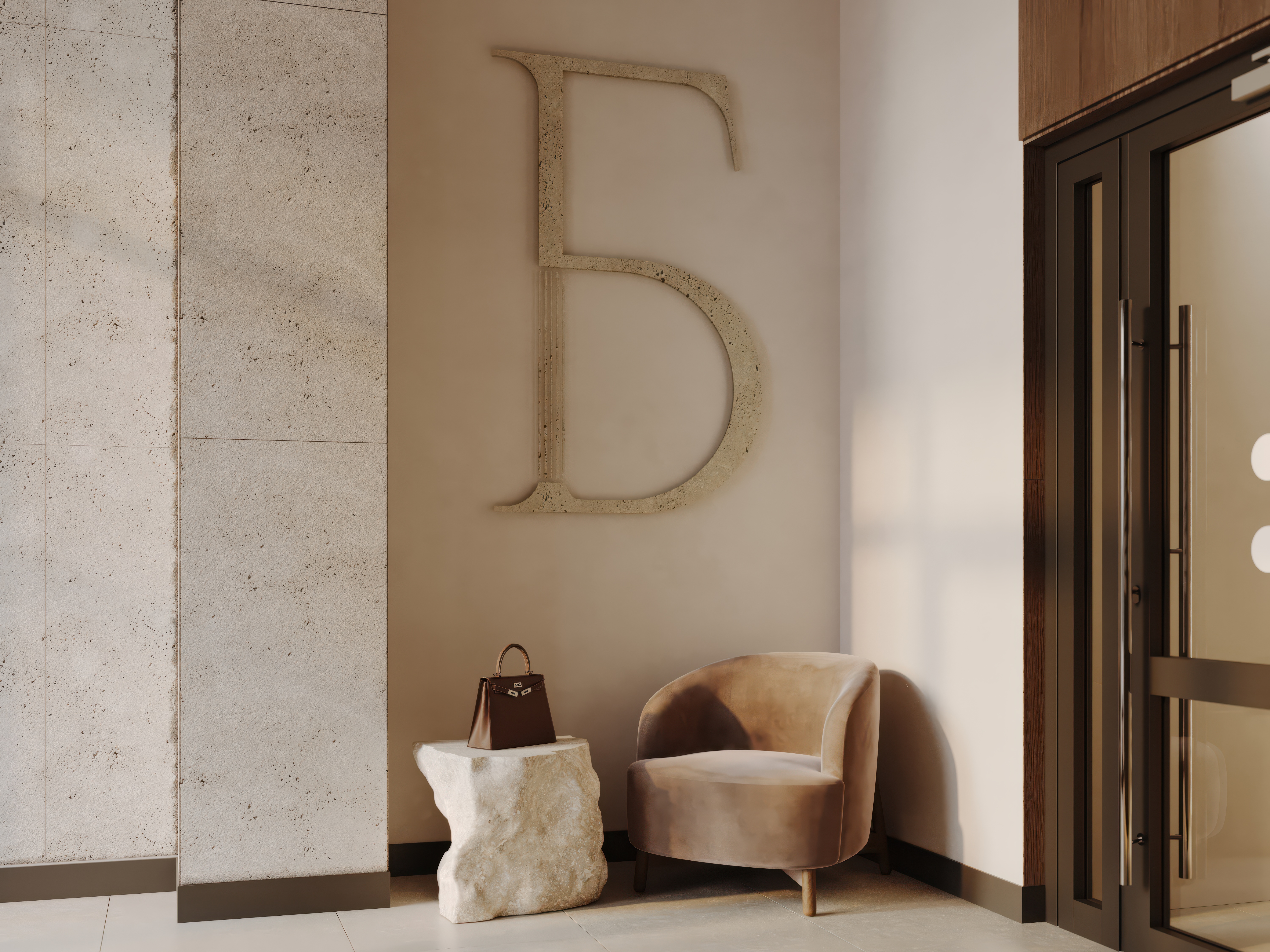 Особое внимание уделено деталям: стены украшены декоративными панелями с рельефом, напоминающим скальные образования — они придают интерьеру глубину и динамику.